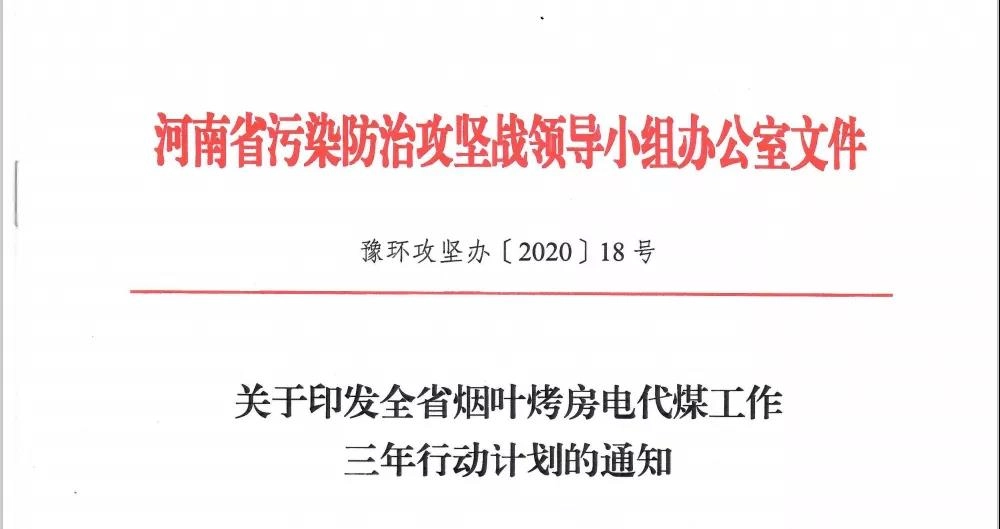 为改善环境空气质量,加快推进烟叶烤房电代煤工作,近日,河南省污染防治攻坚战领导小组办公室印发《全省烟叶烤房电代煤工作三年行动计划》(以下简称《计划》)。