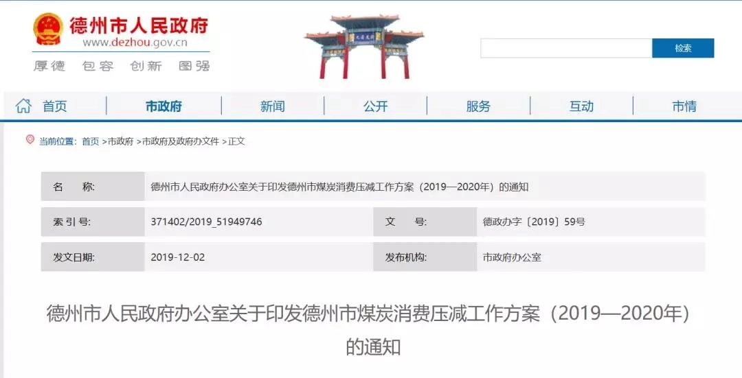 日前,德州市人民政府办公室印发《德州市煤炭消费压减工作方案(2019—2020年)》,提出以2018年省确定德州市煤炭消费量为基数,2020年全市煤炭消费净压减153万吨。利用5年左右时间,完成大容量高效机组余热和新能源供暖改造800万平方米。