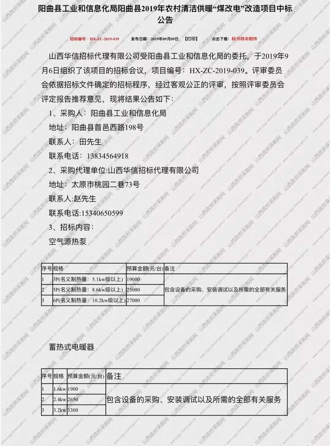 再一次中标——真心公司再次中标阳曲县煤改电项目