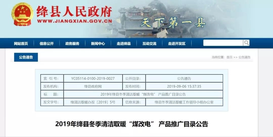 真心公司入围2019年绛县“煤改电” 产品推广目录