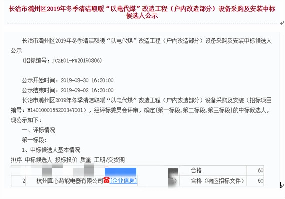 真心公司成功中标长治市潞州区煤改电项目