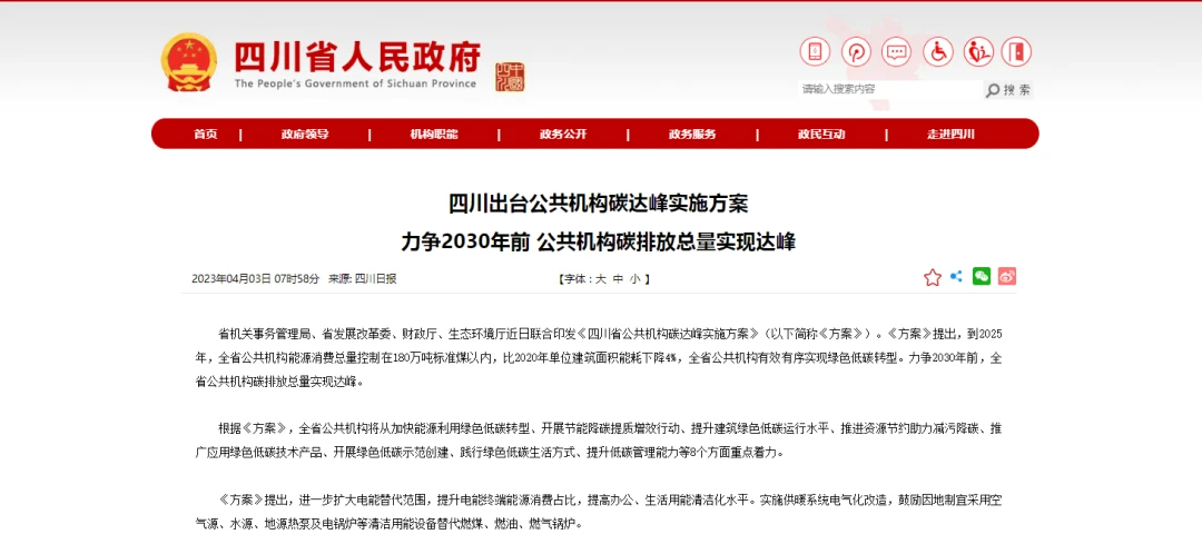 四川出台公共机构碳达峰实施方案力争2030年前 公共机构碳排放总量实现达峰