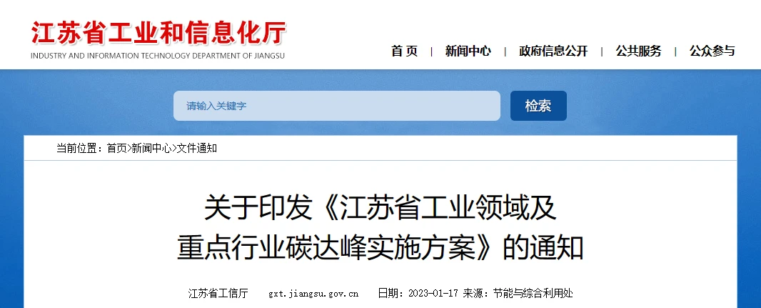 江苏省:工业及重点行业领域推进非化石能源替代,开展高效热泵等项目开发