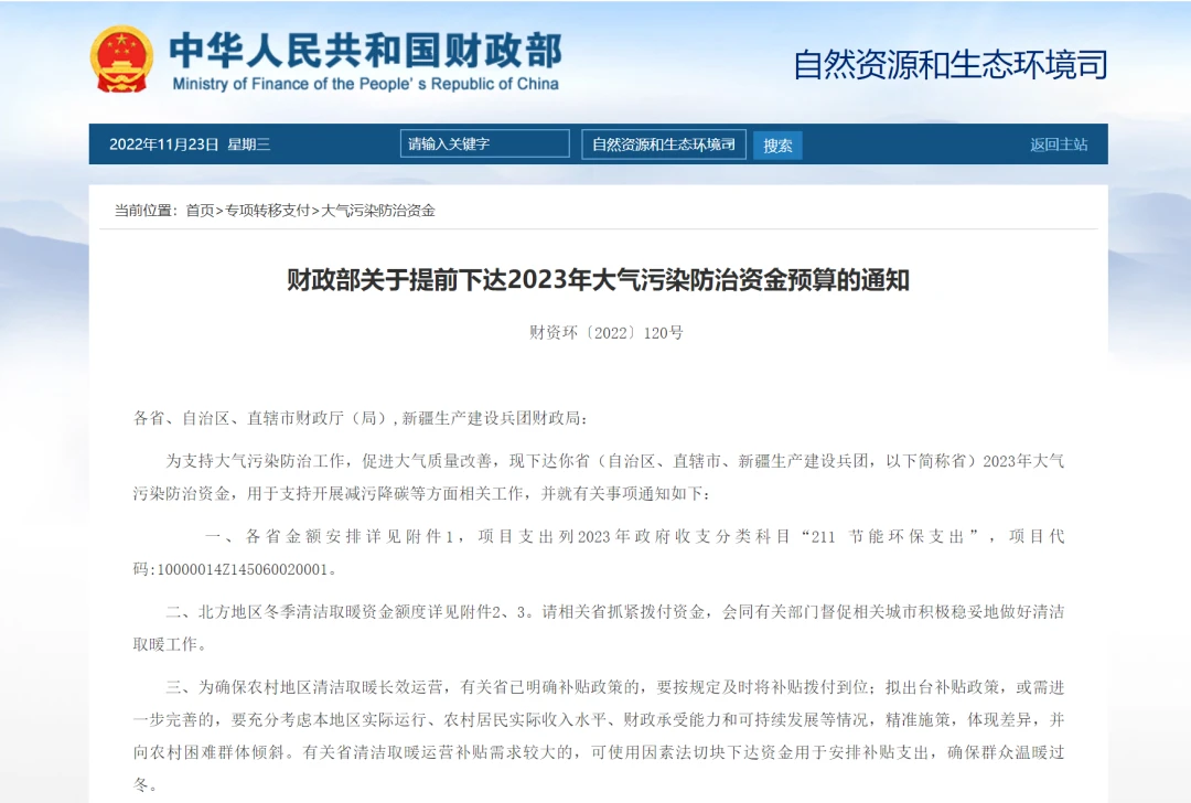 财政部:补贴134.4亿,支持44地市2023冬季清洁供暖