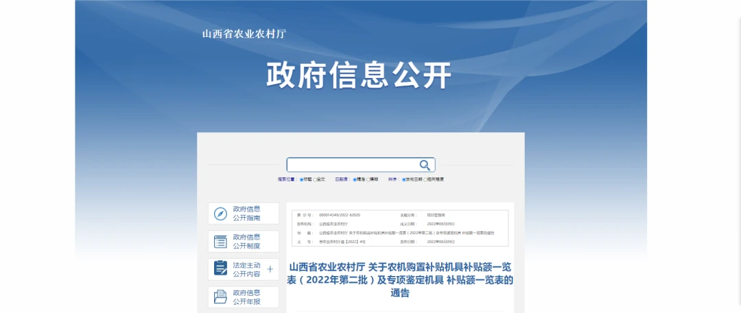 近日,山西省农业农村厅 发布关于农机购置补贴机具补贴额一览表(2022年第二批)及专项鉴定机具 补贴额一览表的通告