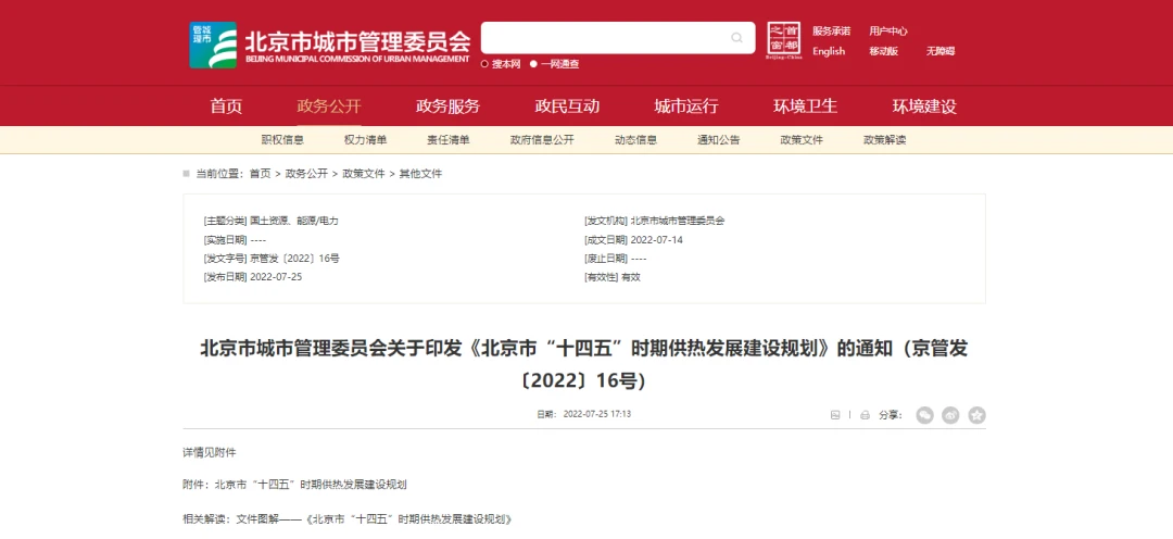 近日,北京市城市管理委员会印发《北京市“十四五”时期供热发展建设规划》的通知。