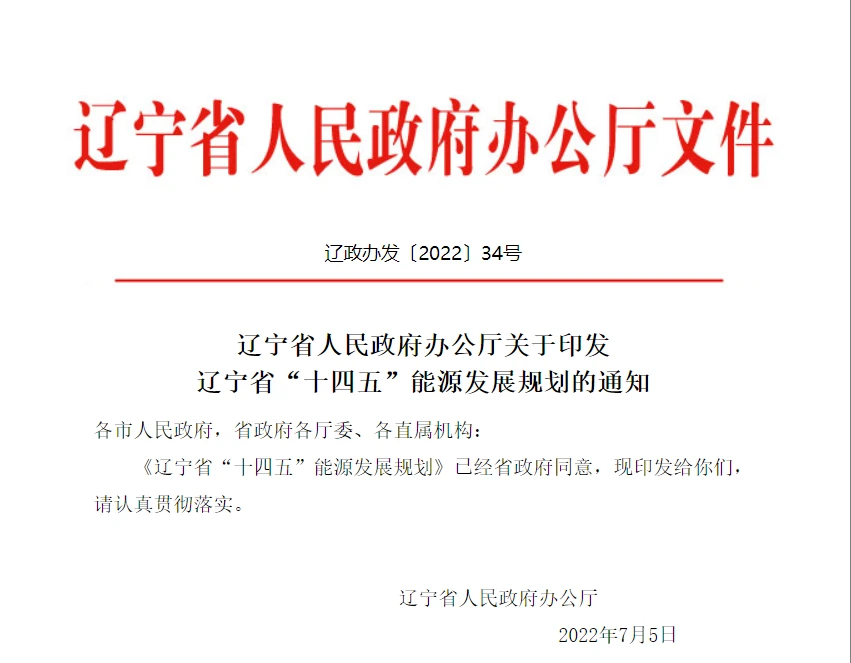 近日,辽宁省人民政府办公厅印发辽宁省“十四五”能源发展规划的通知。