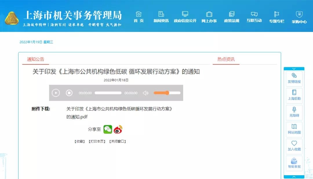 近日,上海市机关事务管理局印发《上海市公共机构绿色低碳 循环发展行动方案》的通知。