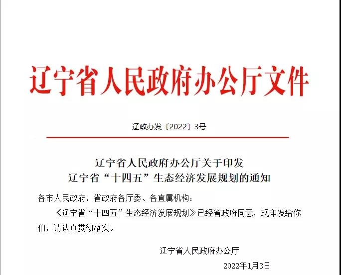 近日,辽宁省人民政府办公厅印发辽宁省“十四五”生态经济发展规划的通知。
