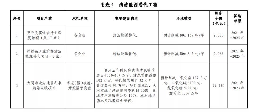 大同十四五环保规划:投资99.19亿,清洁取暖改造5041.4万㎡