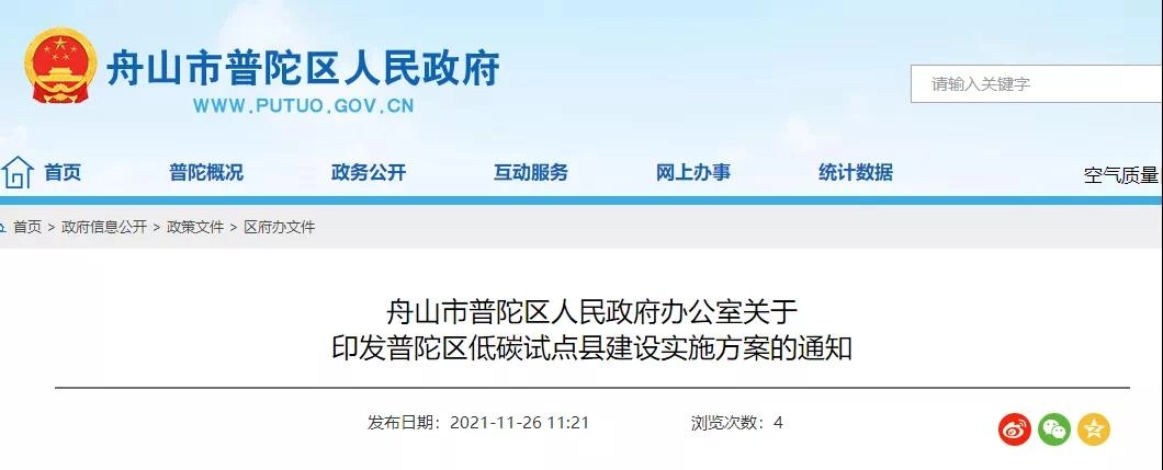 近日,舟山市普陀区人民政府发布《舟山市普陀区人民政府办公室关于印发普陀区低碳试点县建设实施方案的通知》,通知指出:普陀区作为浙江省第一批低碳能源发展类试点县创建单位,拟通过3-5年创建期,率先实现碳达峰与碳中和,全力打造全省能源低碳发展的“普陀样板”。通知提到:提高建筑可再生能源应用力度,优先利用建筑本身和周边的余热或废热,推广太阳能光伏发电、太阳能光热、空气源或地表水或海水源热泵、导光管采光系统,开展太阳能光伏系统在既有建筑改造中的应用。提高建筑终端电气化水平,加快建设集光伏发电、储能、直流配电、柔性用电为一体的“光储直柔”建筑。到2023年,可再生能源替代常规建筑能源比例达到8%。