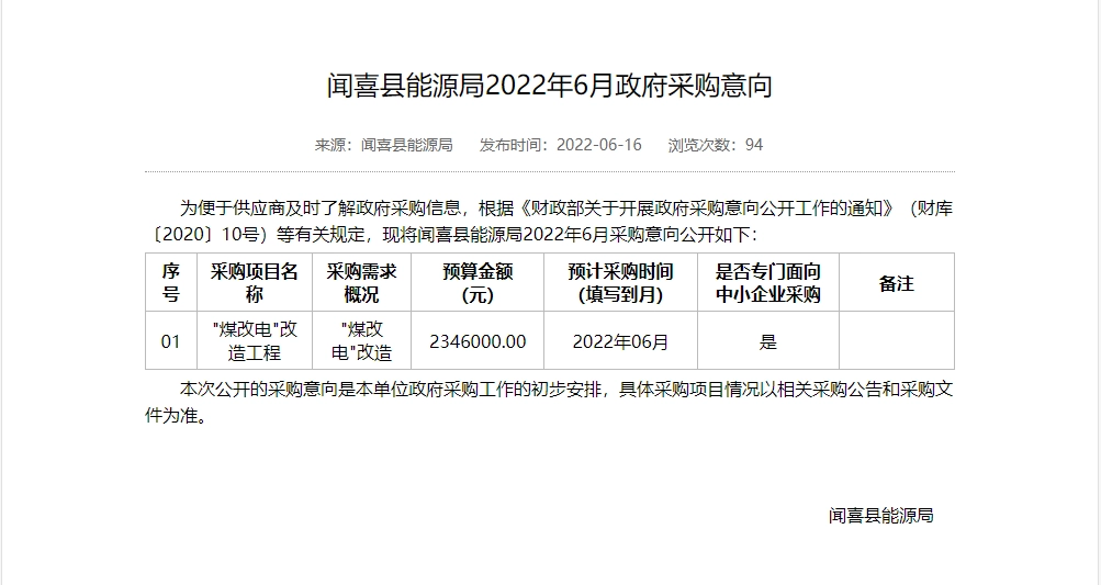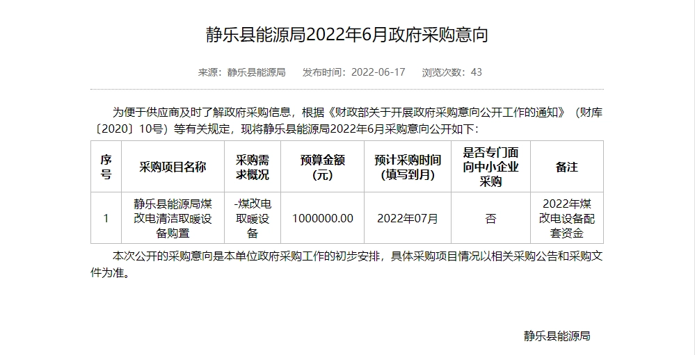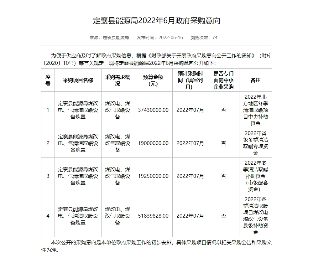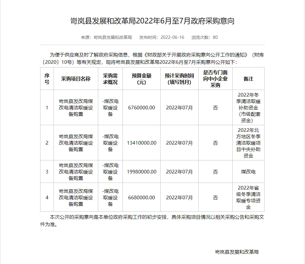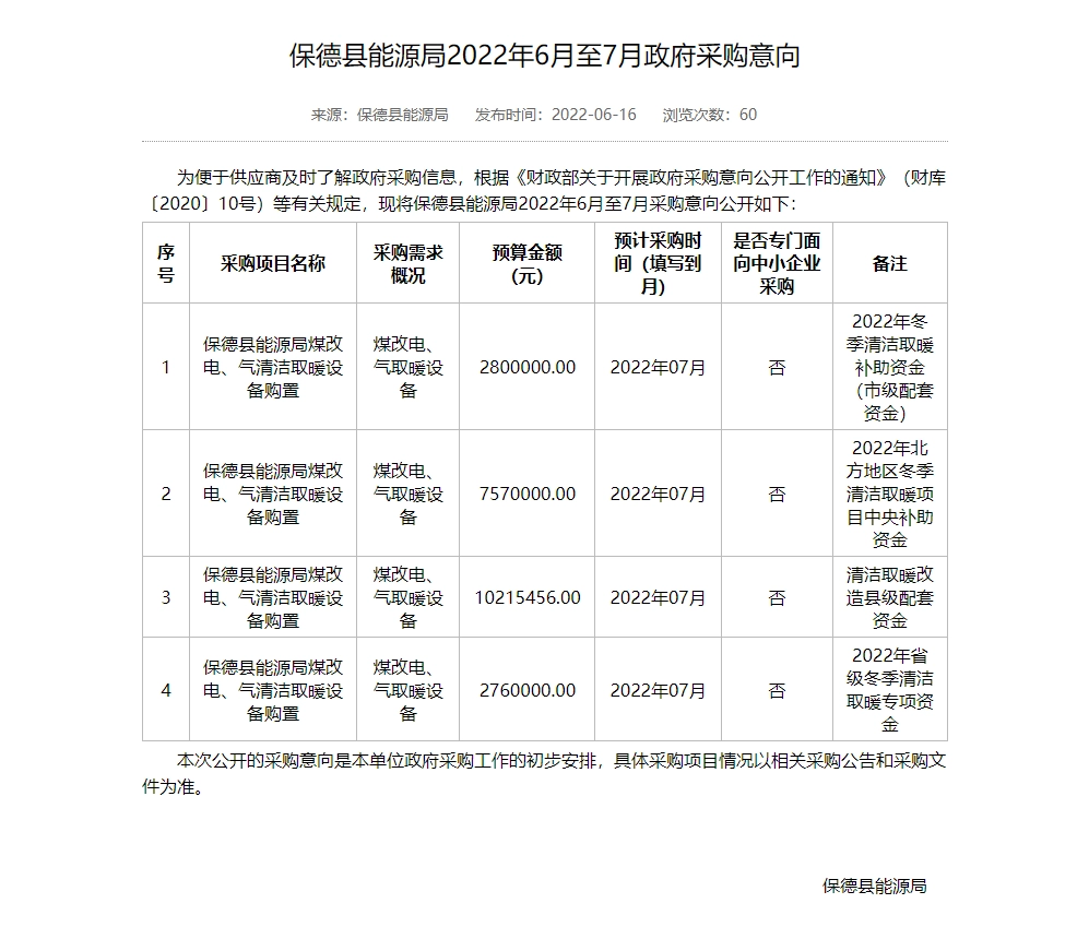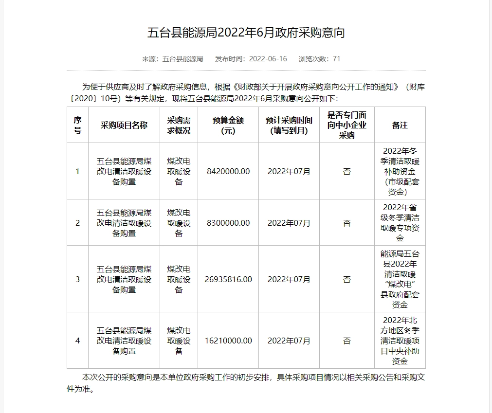 忻州市2022年“煤改电”“煤改气”设备采购项目采购需求论证公示