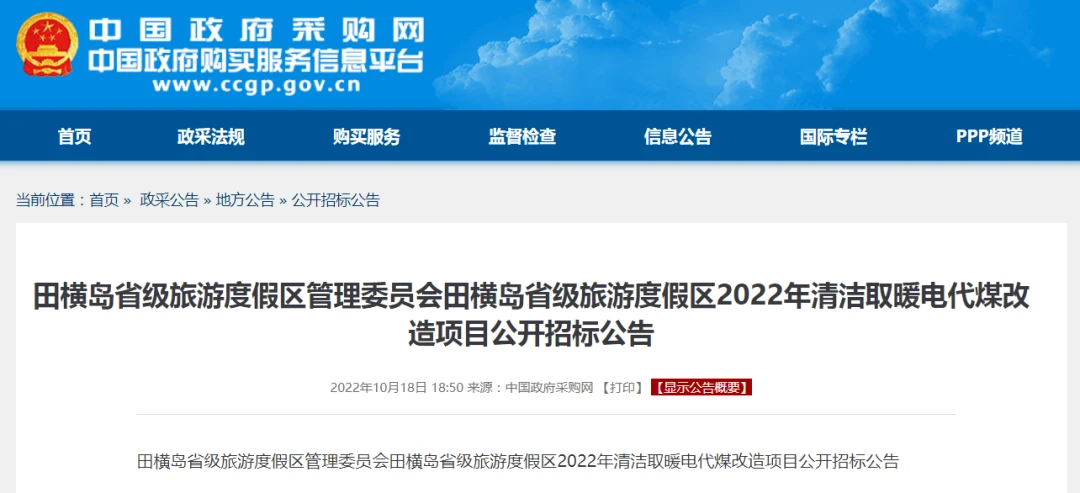 田横岛省级旅游度假区管理委员会田横岛省级旅游度假区2022年清洁取暖电代煤改造项目公开招标公告