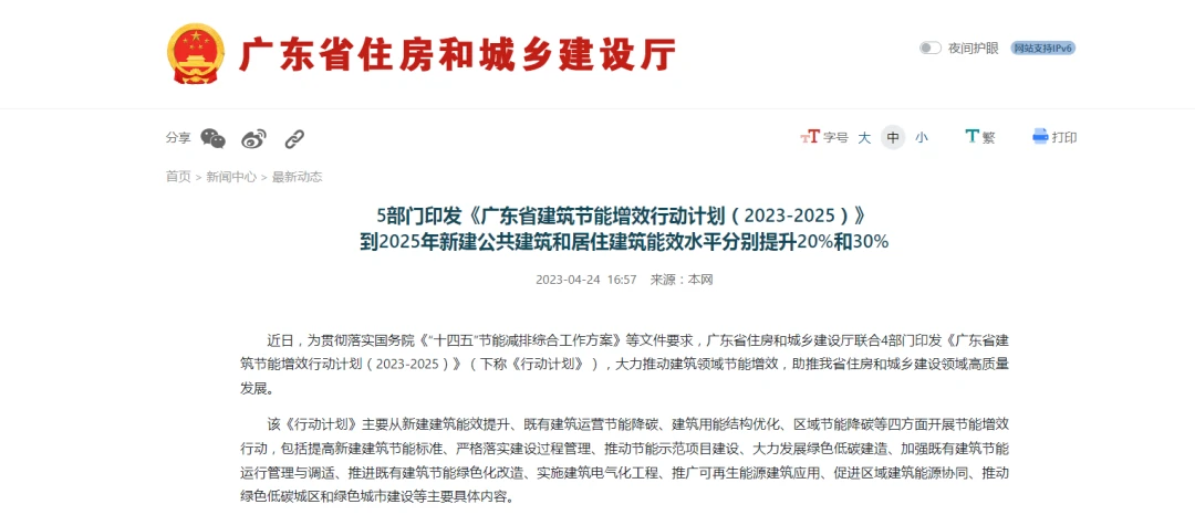 近日,为贯彻落实国务院《“十四五”节能减排综合工作方案》等文件要求,广东省住房和城乡建设厅联合4部门印发《广东省建筑节能增效行动计划(2023-2025)》(下称《行动计划》),大力推动建筑领域节能增效,助推我省住房和城乡建设领域高质量发展。