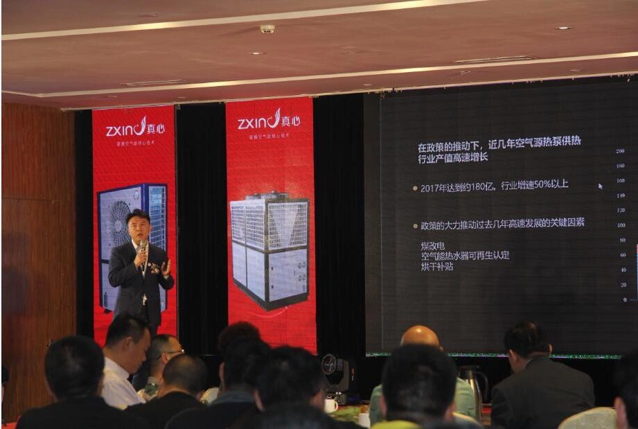 企业的发展离不开技术的创新,除了当天下午的特训营,真心更为广大经销商准备了一场空气源热泵技术交流盛宴。空气源热泵技术是实现清洁能源供暖的重要技术,通过讲解应用了空气源热泵技术的系列产品,为广大经销商带了一场独特的技术盛宴。