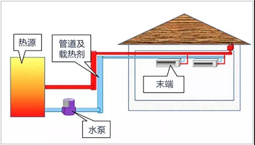 相比空调,空气源热泵采暖的优越性体现在哪里?如图1所示,不论是空气源热泵还是空调供暖,设计图纸中无非是由这几个部分组成:热源、末端、管道和水泵。这几个部分无论哪一个出了问题,系统都达不到设计的供暖要求。