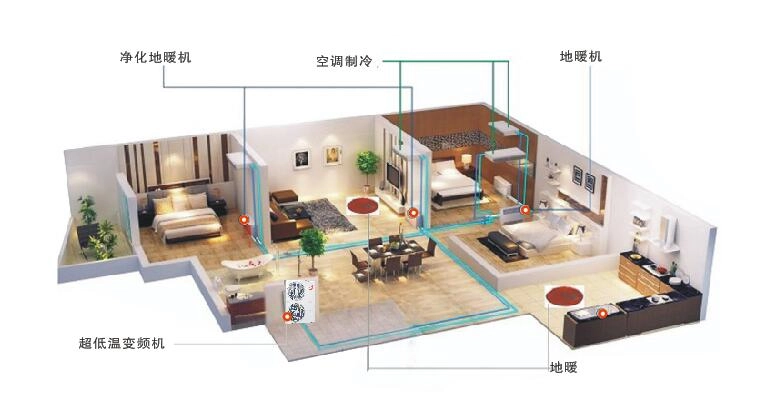 第四个优势是灵活性。空气源热泵采暖系统中主机、管道、水泵、盘管、地暖都是独立的,其灵活性不是普通的空调可比的,比如多联机安装之后基本上就动不了了,而空气源热泵可以全部拆下来。