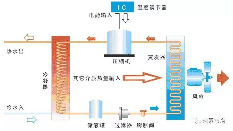 热泵是采用“逆卡诺循环”原理,也叫蒸汽压缩制冷系统的产品,按冷热来源分为三大类:空气源、水源、地源。