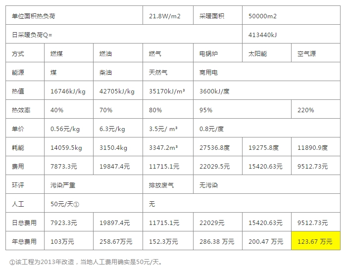 以下数据计算,按节能建筑物计算,非节能建筑仅参考使用,采暖季按130天计算,燃煤、燃油锅炉维护人工费用按50元/天。