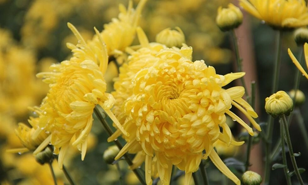 菊花色泽饱满,花朵大小整齐,香味清香浓郁,色泽鲜黄,