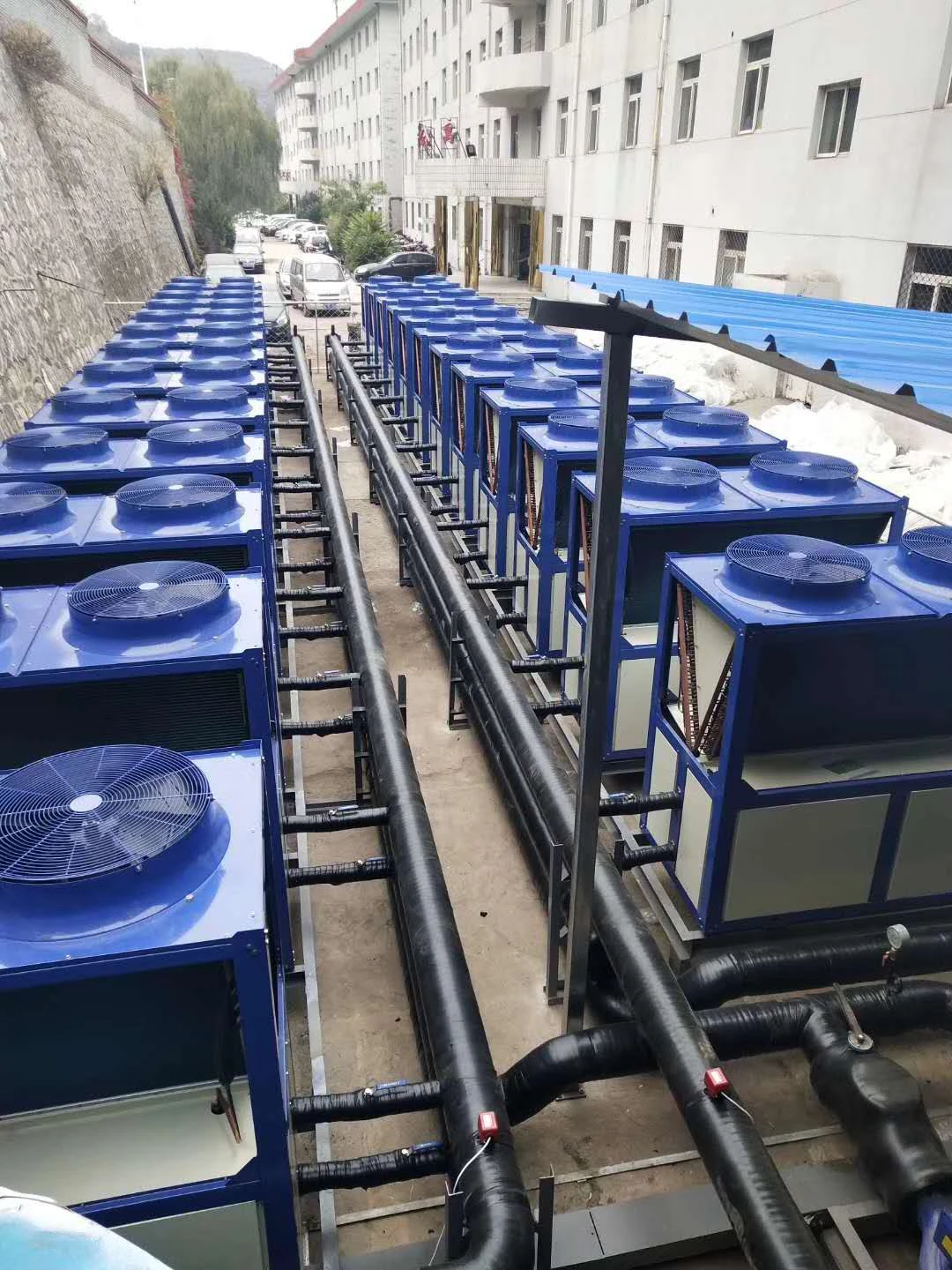 与城市热力管网相比,省去开挖道路,铺设热力管道的巨额投资,省时、省钱。系统可放置于楼顶平台或地下室,利用了闲置空间,无需占用城市宝贵的土地空间,为用户创造效益。