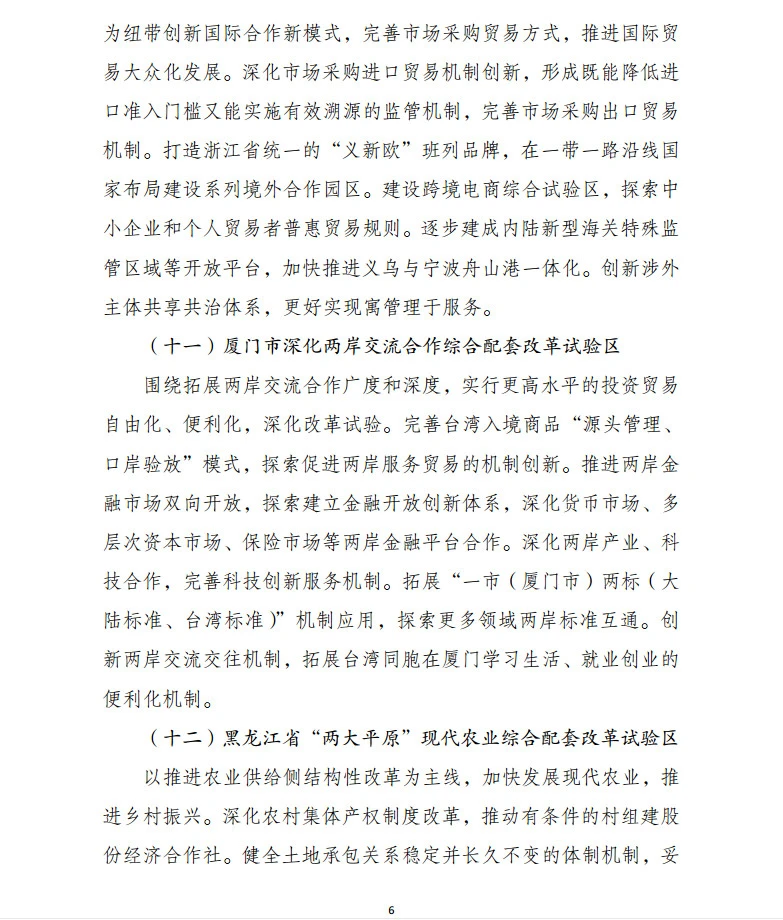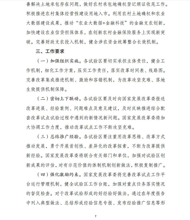 根绝《重点任务》要求,各试验区要注重用改革思维、改革方式推动发展,勇于开展首创性、差异化的改革探索,不断为改革提供新经验。国家发展改革委将联合有关部门和单位,加强对试验区创新成果的评估,对有示范价值的体制机制创新做法,积极复制推广,同时研究探索建立试验区动态调整机制。