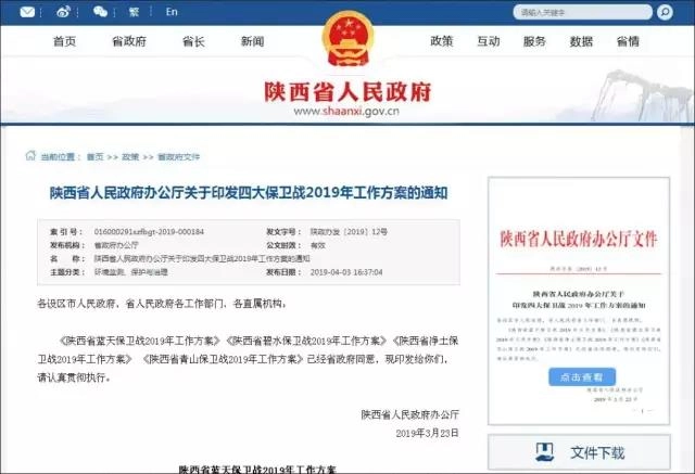 《陕西省人民政府办公厅关于印发四大保卫战2019年工作方案的通知》