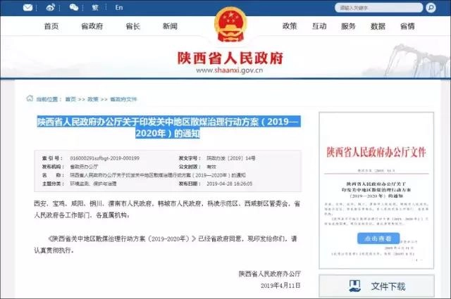 《陕西省关中地区散煤治理行动方案(2019—2020年)》