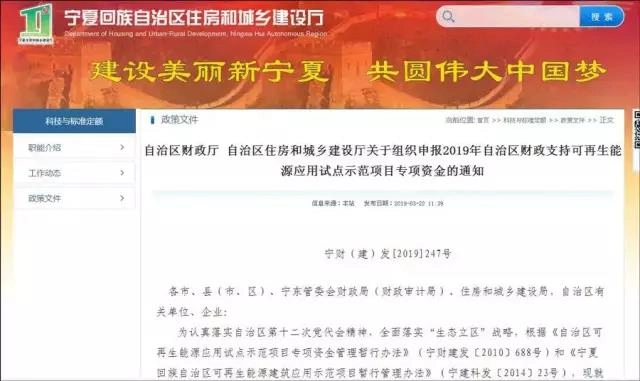 《关于组织申报2019年自治区财政支持可再生能源应用试点示范项目专项资金的通知》