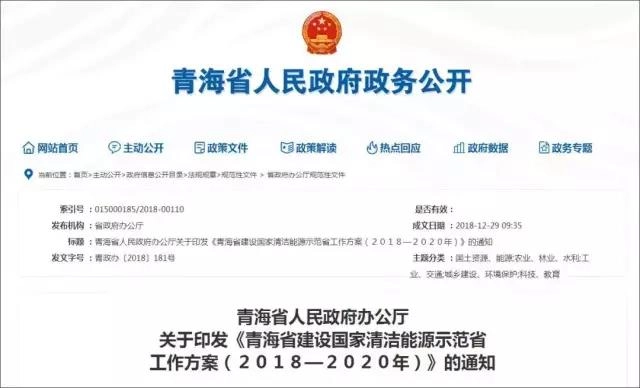 《青海省建设国家清洁能源示范省工作方案(2018—2020年)》