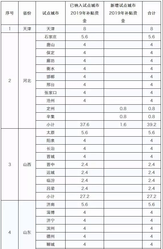 文件中提到:二、北方地区冬季清洁取暖试点补助资金试点城市名单及资金额详见附件2。请相关省(自治区、直辖市)抓紧将资金拨付到试点城市,会同有关部门督促试点城市积极稳妥地做好清洁取暖工作。纳入第三批试点范围的城市要尽快做好清洁取暖实施方案,于2019年7月20日前报送生态环境部、财政部、住房和城乡建设部、国家能源局,四部门审核通过后予以备案,作为地方实施清洁取暖改造和绩效评价的重要依据。