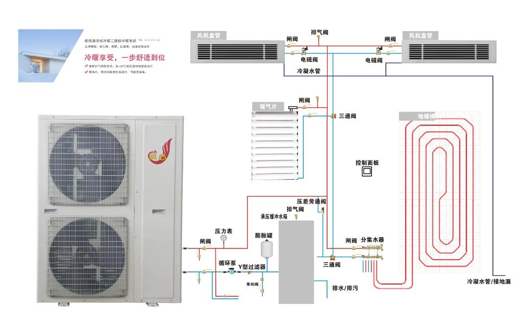 主要市场:目前的主要市场是高端别墅和农村地区的自建房。这些地区农村经济发达,消费者的消费水平高,两联供是他们冬季采暖和夏季制冷的首选。另外,在江浙沪地区,借助这两年可再生能源的楼盘配套政策,空气能被大家熟知,且城市里的小区楼盘都有预留安装位,因此也推动了两联供市场在商品房领域的应用。