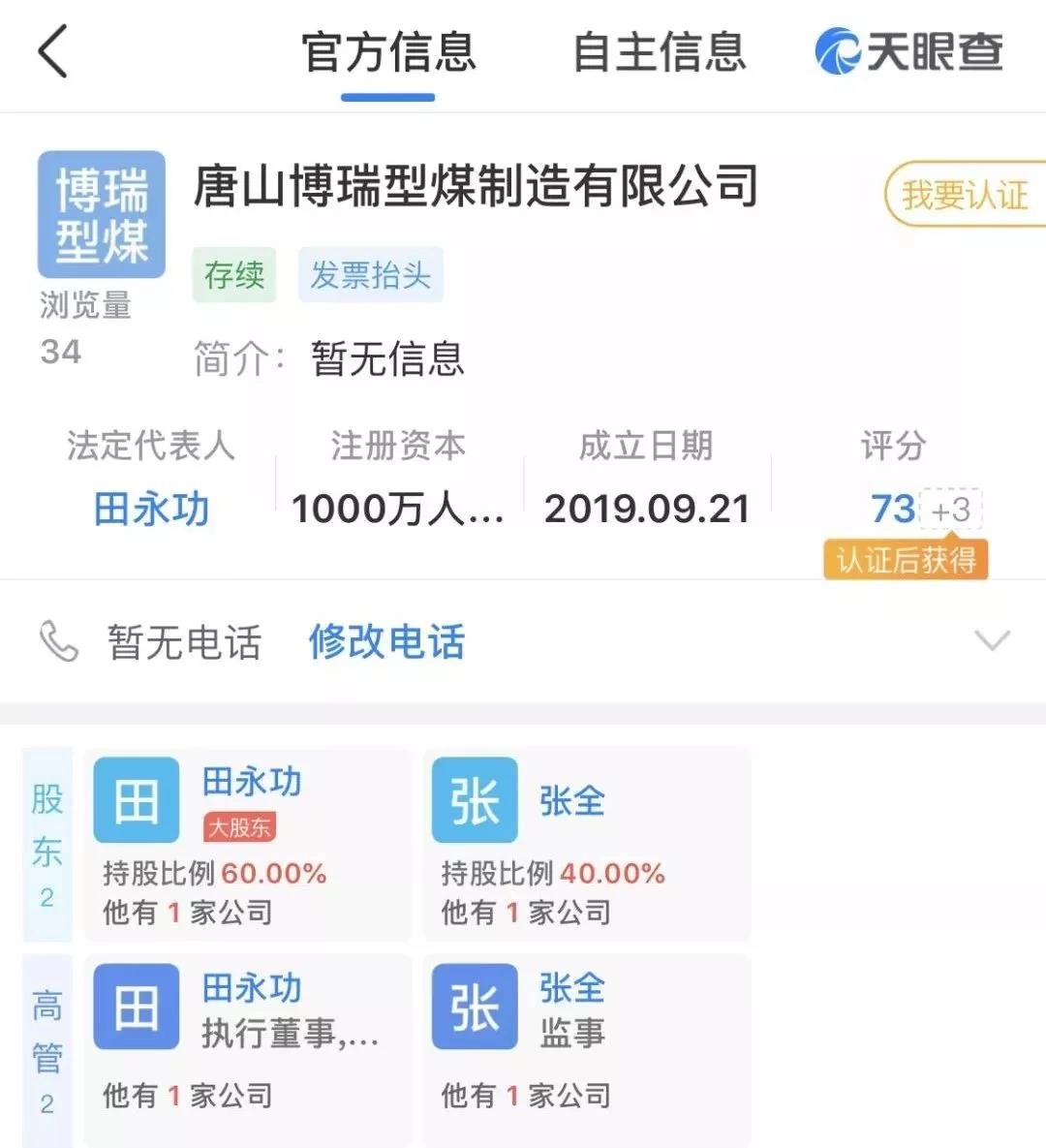 记者发现,唐山博瑞型煤有限公司是在今年9月21日才注册成立的,而唐山白马山型煤有限公司已经于11月初进行了简易注销。
