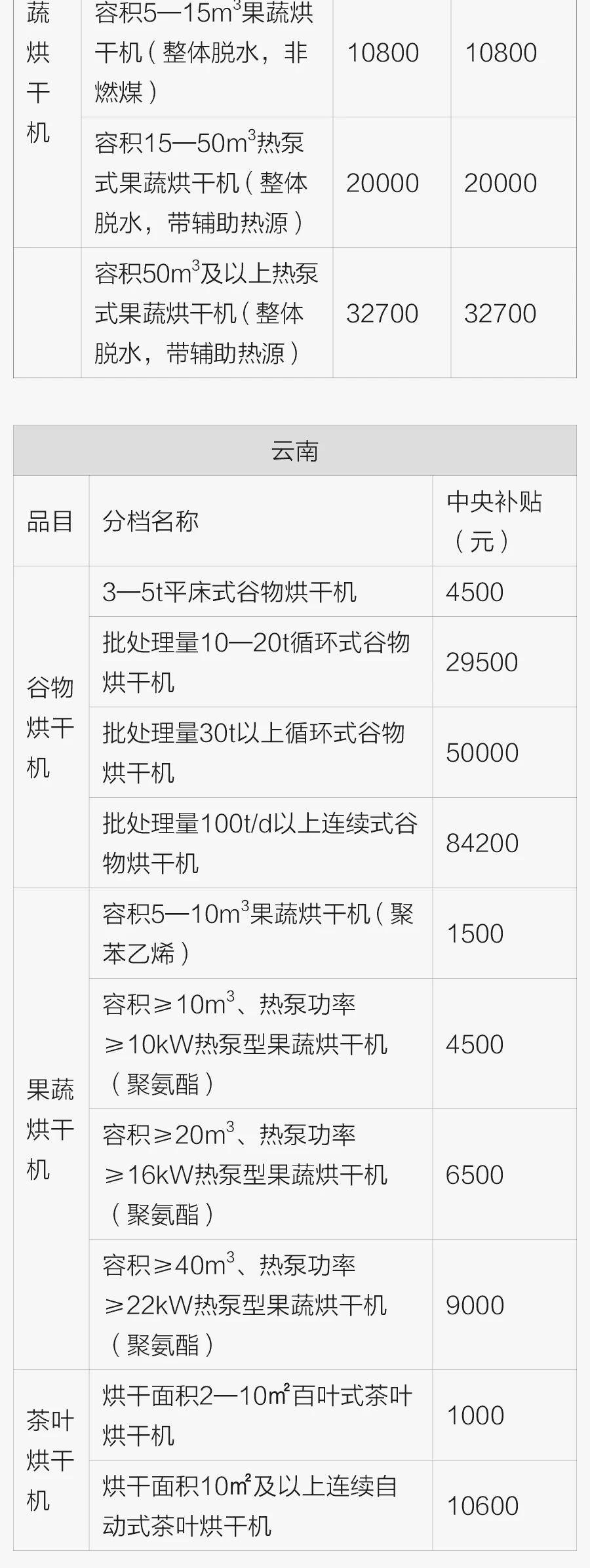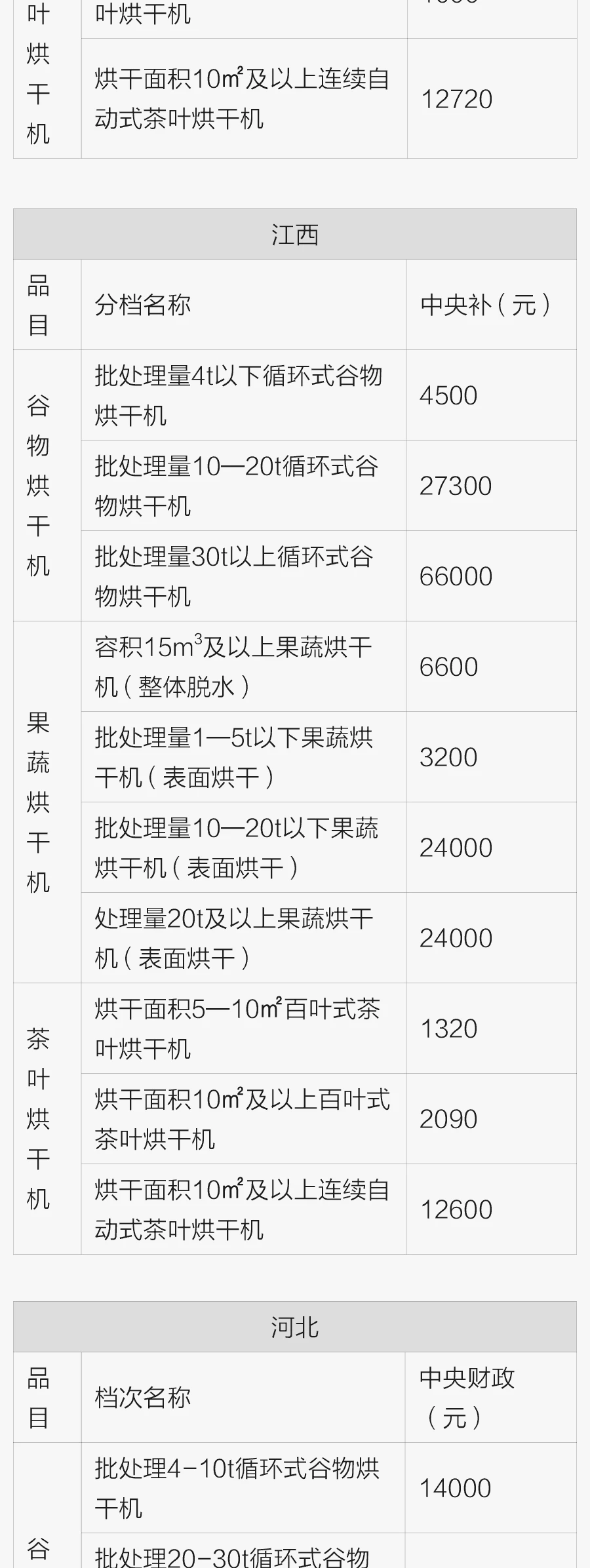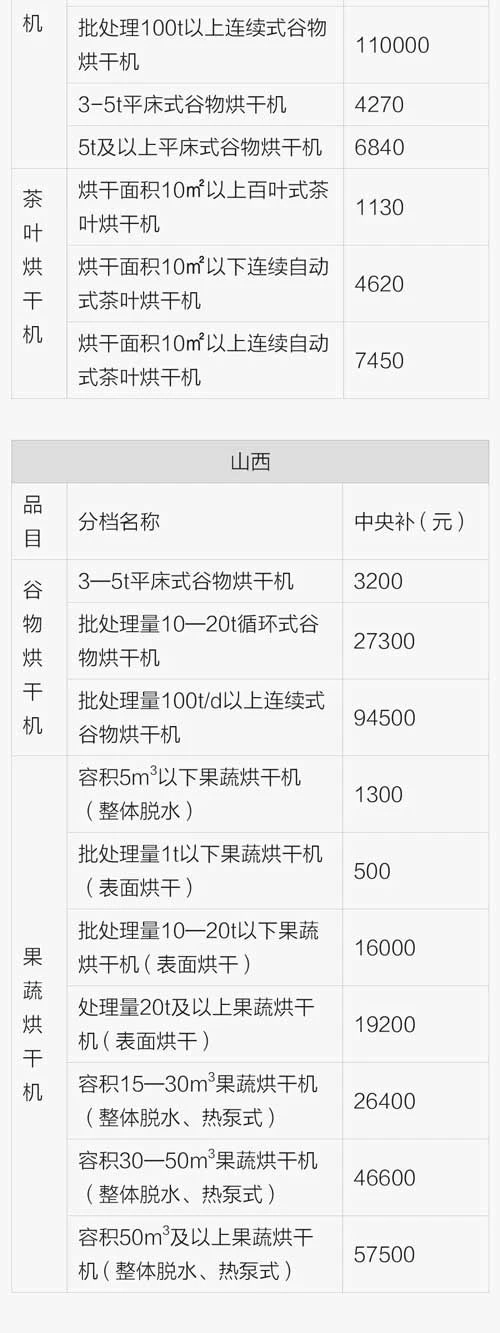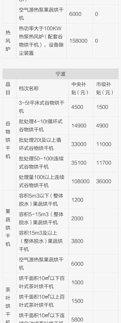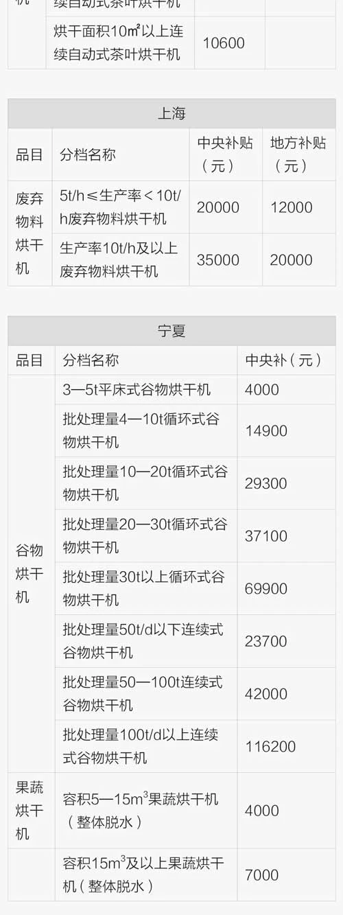 今天,我们来盘点一下陕西、湖北、浙江、上海、宁夏、青海、山东、山西、吉林、广西、湖南、江西、河北、内蒙古、天津、新疆、云南、安徽、黑龙江农垦的热泵烘干相关补贴政策。涉及到的机型包括谷物烘干机、果蔬烘干机、茶叶烘干机、油菜籽烘干机、非燃煤型热水加温系统、废弃物料烘干机等。