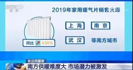 近日,有媒体披露了一份统计数据:2019年,家用暖气片销量同比增长430%,而销量增长的“主力军”正是上海、南京、武汉等南方城市。同时,中国建研院建筑环境与能源研究院院长徐伟也向媒体介绍:“大致测算了一下,未来十年,南方供暖总市场规模可能在4000亿-5000亿,平均到每年,可能会增加400亿的规模。”