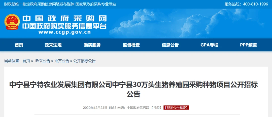 为贯彻落实《国务院办公厅关于稳定生猪生产促进转型升级的意见》《国务院办公厅关于促进畜牧业高质量发展的意见》,我部组织开展了2020年畜禽养殖标准化示范创建活动。按照《畜禽养殖标准化示范创建活动工作方案》要求,经企业自愿申请、省级畜牧行政主管部门遴选推荐、我部组织专家评审,共有180家畜禽养殖场符合标准。经部领导审定同意,现将2020年农业农村部畜禽养殖标准化示范场名单予以公示,公示期为2020年12月23日至29日。公示期间,如有异议,请与农业农村部畜牧兽医局联系。
