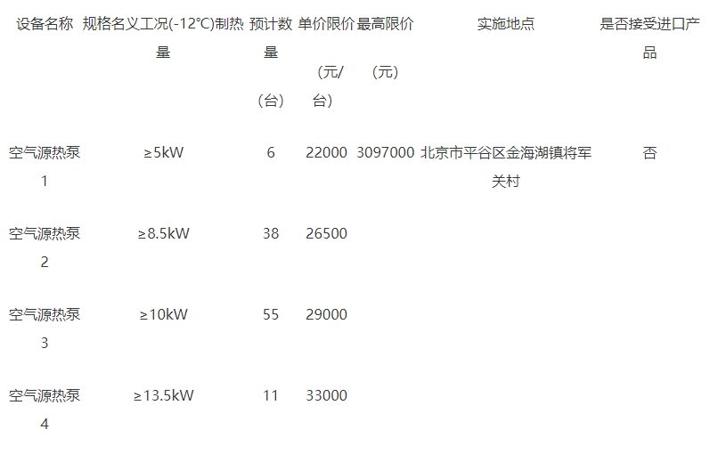 采购需求:包括空气源热泵的入户设计、设备供货(包括数据传输装置)、安装调试、水箱、手动加压补水泵、辅材、售后服务等全部内容。