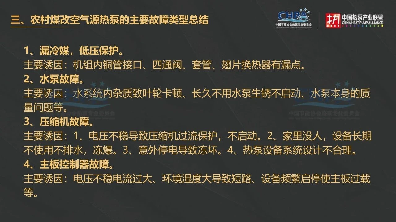 农村煤改空气源热泵的主要故障类型总结