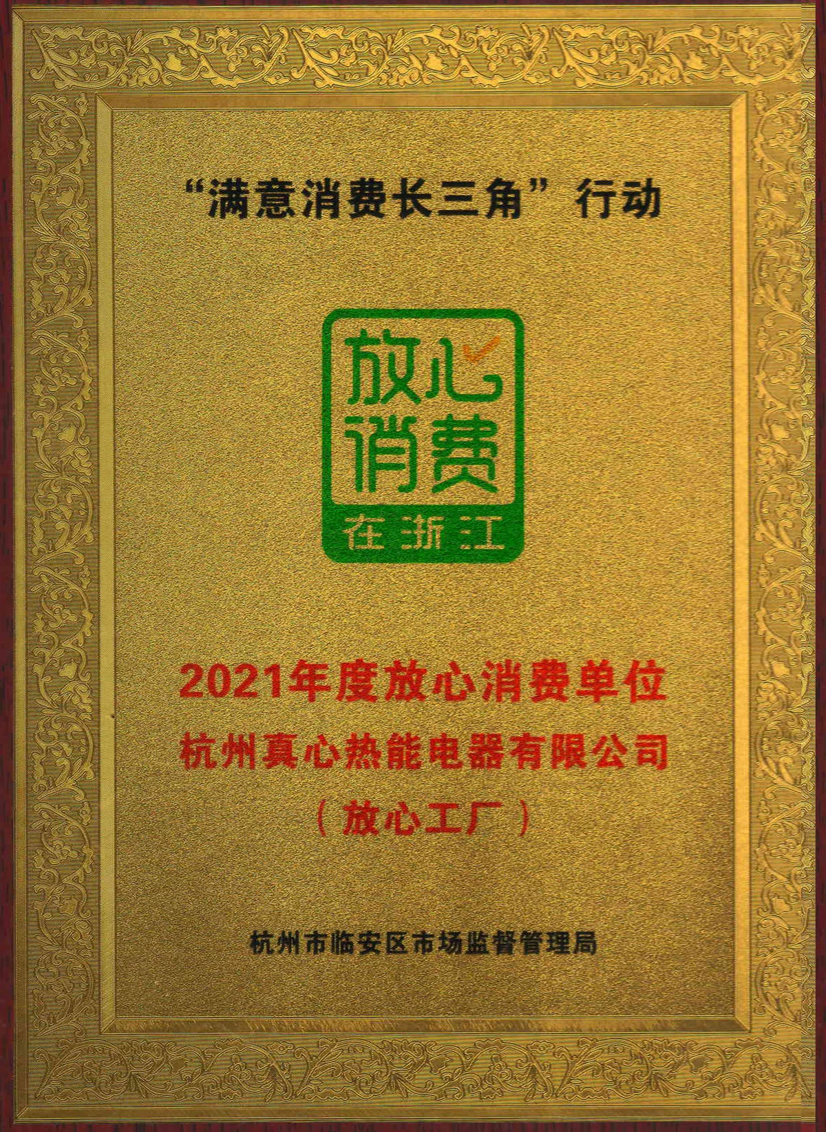 百姓所需、民生所求是放心消费创建的出发点和归属点,也是高质量发展、高品质生活的关键环节。2021年,在这一年里,是浙江省深化放心消费建设、提升创建质量的关键一年,也是实施放心消费建设数字改革的元年。而真心公司成功荣获 “2021年度放心消费单位”放心工厂。