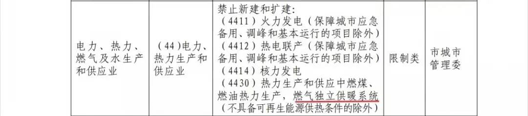 《目录》提到,禁止新建和扩建燃气独立供暖。