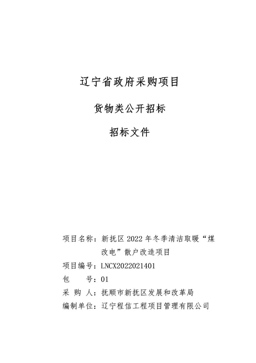 项目名称:新抚区2022年冬季清取暖“煤改电”散户改造项目