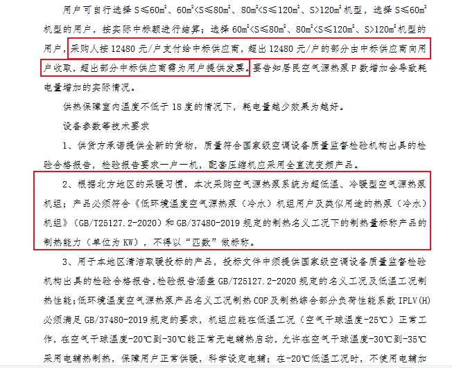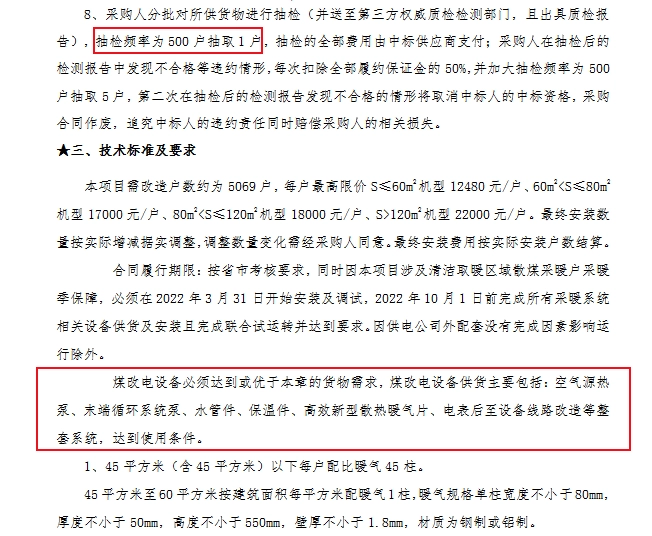 采购需求:煤改电供货及安装