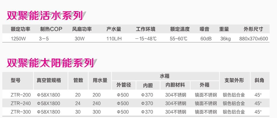 1、瞬时热水不等待,洗澡轻松更愉快; 2、水源怎么样,水质一样棒; 3、真心双聚能热水器是太阳能与空气能的完美结合; 4、24小时大量热水供应,阴雨无忧; 5、智能运行、安全放心、节能环保; 6、航空铝型材支架,高效紫金集热管; 7、高效热交换器,黄金氟钛外胆; 8、低噪音专用压缩机; 9、进口聚氨酯保温材料,防腐清水脱膜蒸发器