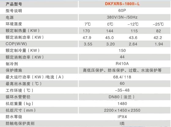 注:1、以上参数为标准名义工况:干球温度-12℃, 湿球温度-14℃ ,进水温度35℃,出水温度41 。