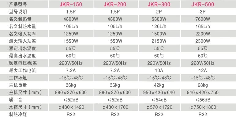 1、以上参数为标准工况:干球温度20℃,湿球温度15℃,进水温度15℃,热水温度55℃时测得;